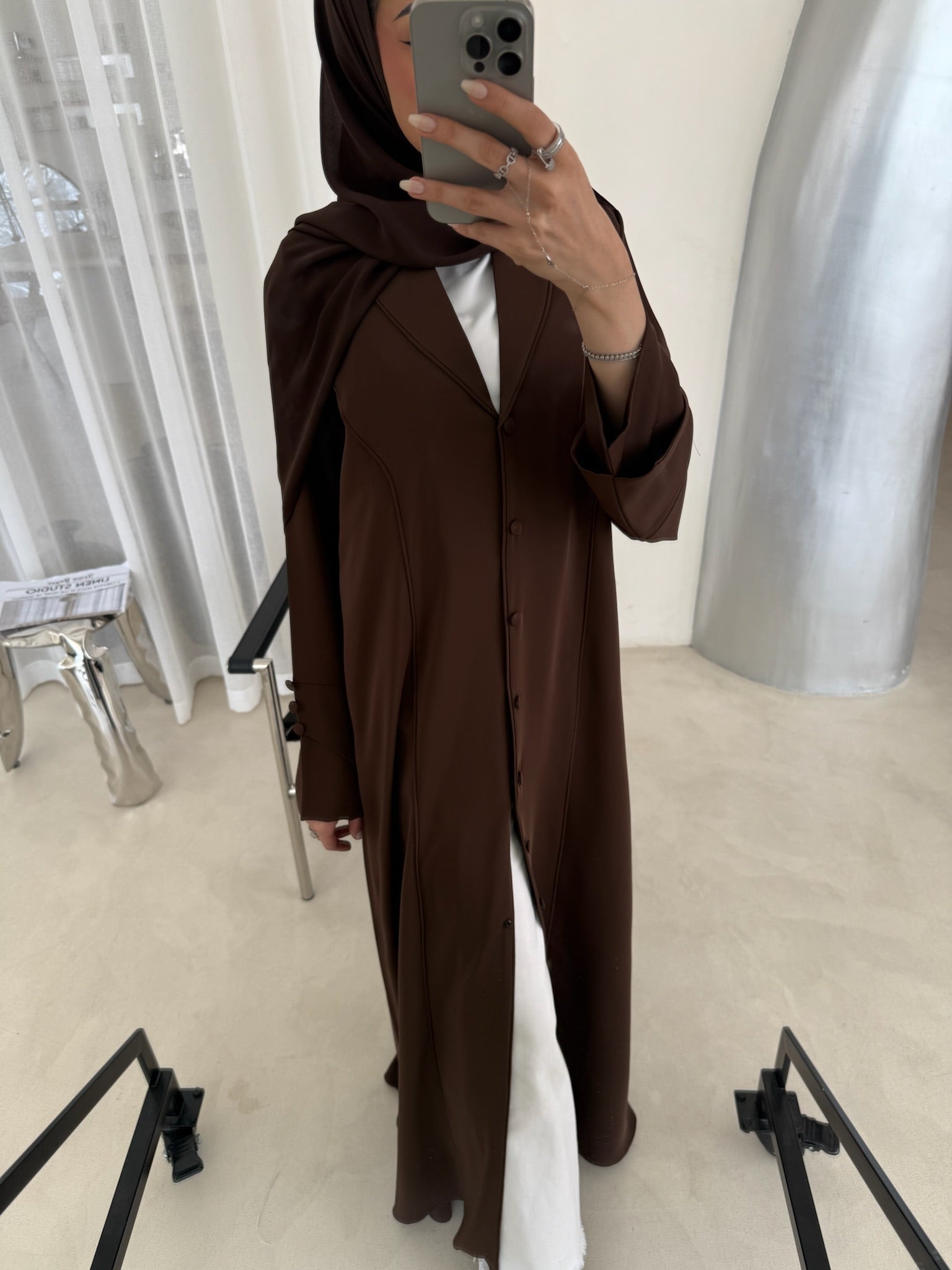 Pre order this gorgeous brown button down statement piece. Double cuff design with button details.