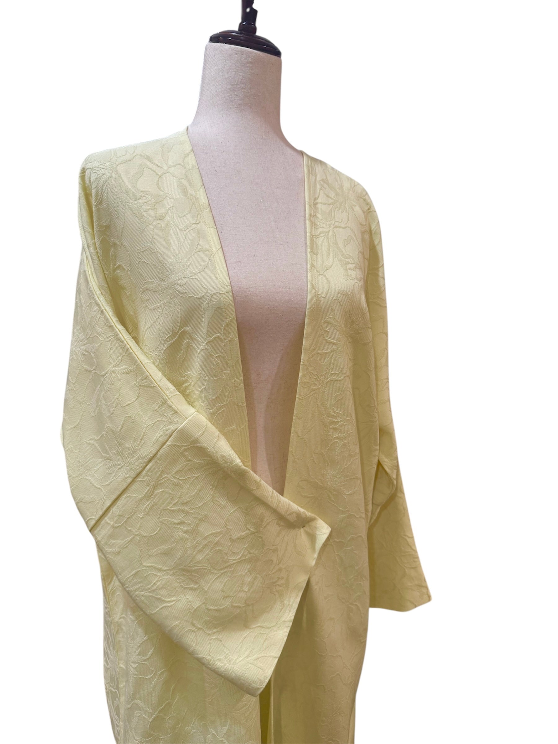 Beautiful brocade floral embroidered material. Folded stitch, seam sleeve design. Flower prints all throughout Abaya. This Abaya is a very casual cut made one-size-fits-all.